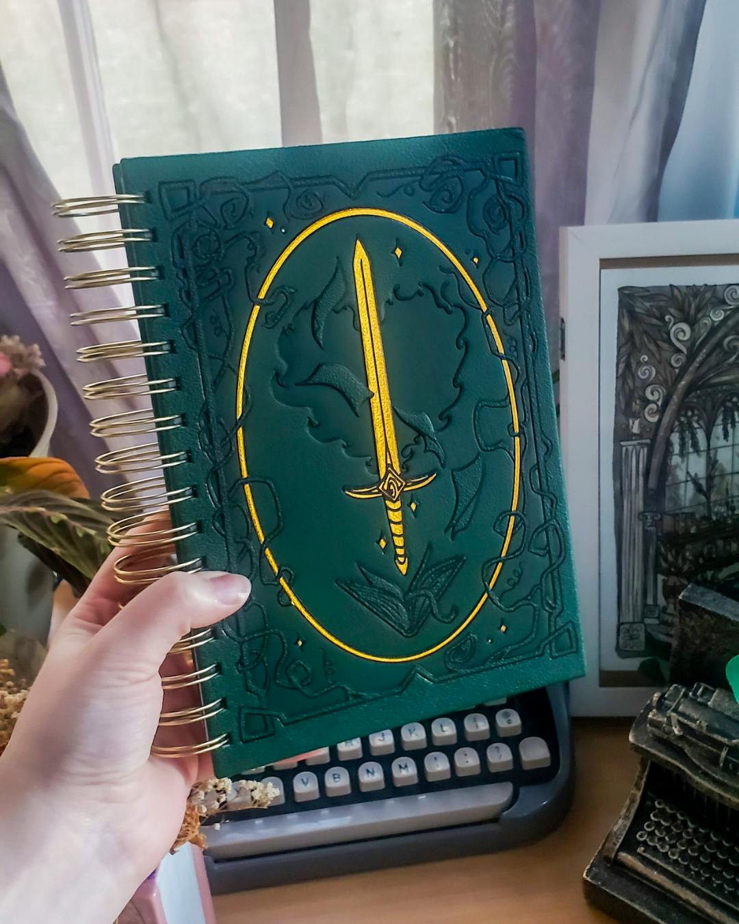 Designed in a rich forest green with shining gold foil, the cover features a sword rising from an open book, a heart of spirit and fire supporting the gilded gold blade, while framed with intricate vines. Whether you see it as Scripture’s living word, or as a magical relic worthy of your next campaign, this notebook is built to feel like an object of power in your hands.
